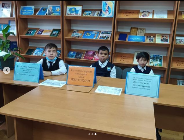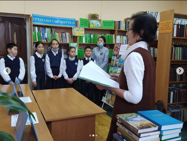 “Оқуға құштар мектеп” жобасының аясында 5 “А” сынып оқушыларымен ауылдық кітапханаға саяхат.