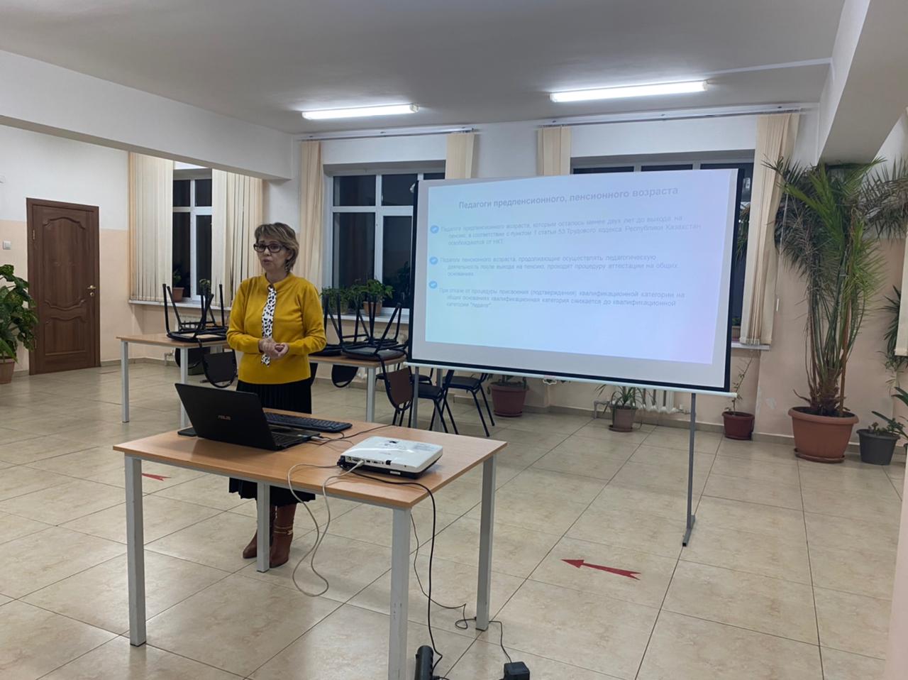 2022 жылдың 2 наурыз күні қазақ тілі мен әдебиеті пәнінің мұғалімі Белденбаева Жазира Токтакыновна Мұғалімдерді аттестаттау, аттестаттаудың мақсаты, аттестаттаудың негізгі міндеттері, аттестаттауды өткізу және дайындау технологиясы туралы жас мамандарға семинар өткізді.