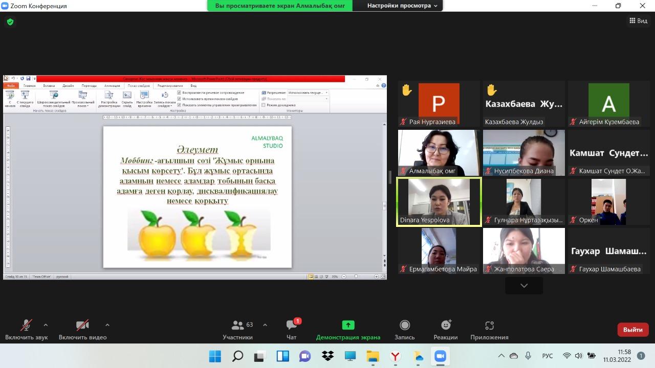 2022 жылдың 11 наурыз күні Алматы облысы білім басқармасының Қарасай ауданы білім бөлімінің оқу-әдістемелік орталығының жылдық жоспары негізінде қазақ тілі және қазақ әдебиеті, бастауыш сынып мұғалімдеріне арналған «Жас мамандардың кәсіби құзыреттілігін арттыру» тақырыбында аудандық вебинар өткізілді. Вебинардың мақсаты: Жас мамандардың кәсіби құзыреттілігін арттыру, білім алушылардың креативті ойлау дағдысын қалыптастыру. ТРИЗ-педагогика әдістерімен креативті ойлауды дамыту. Жалпы, бұл вебинардан күтілетін нәтиже жас мамандардың кәсіби құзыреттілігін арттырады, Сабақта креативті ойлау дағдысын қалыптастырады. ТРИЗ-педагогика әдістерімен креативті ойлауды дамытады.Вебинарда «Қысқа мерзімді жоспар жасау үлгісі» тақырыбында бастауыш сынып мұғалімдері: Бижанова Айман Сапановна Есенова Гүлнар Ауғажиевна сөз сөйледі. «Креативті ойлай аласыз ба?» тақырыбында қазақ тілі мен әдебиеті пәні мұғалімдері: Рақымжанова Асел Ұланқызы., Қамзаева Мөлдір жас мамандарға түрлі сұрақтар қойып, көптеген іс-тәжірибелерімен бөлісті. «Әлемді тану сабақтарында ТРИЗ-педагогика әдістерімен креативті ойлауды дамыту» тақырыбында бастауыш сынып мұғалімдері: Кеңесжан Т.Қ., Ережепова А.М., «Эссе жазудың әдістемесі» туралы қазақ тілі мен әдебиеті пәні мұғалімі: Есеналиева Гүлсім Серікжанқызы барлық өзекті мәселелердің шешімін нақты айтты. Және де «Синергия: Жас мұғалімнен жақсы мұғалімге» атты қызықты сауалнама жүргізген қазақ тілі мен әдебиеті пәні мұғалімі Бопатаева Динара Тондыбайқызы. Вебинар соңында қатысушылар сұрақтар қойып, кері байланыс берді. Вебинар жоғары деңгейде өткізілді.