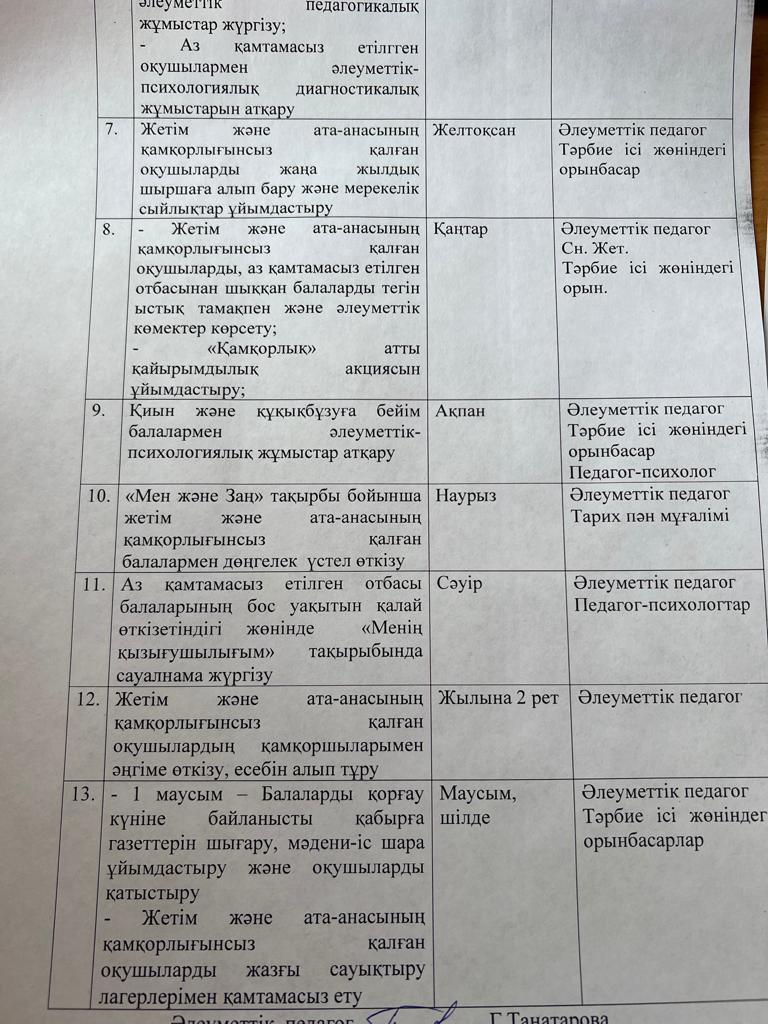 Қамқоршылық кеңес жоспары » Алматы облысы Қарасай ауданы Алмалыбақ ауылындағы орта мектеп-гимназиясы