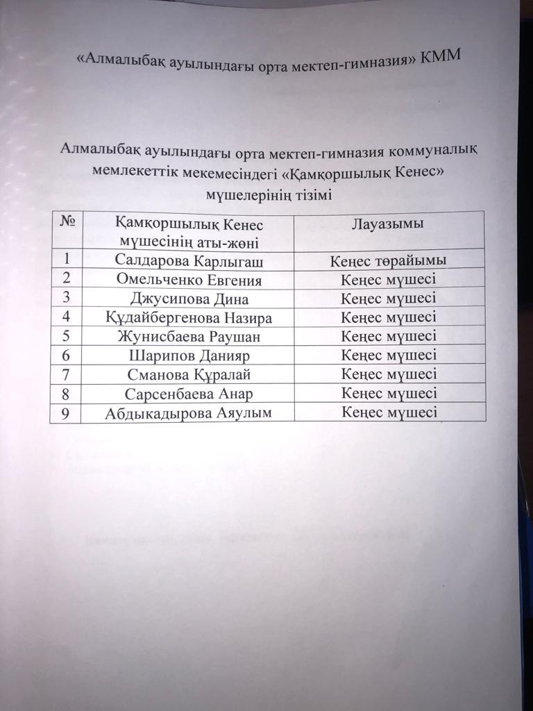 қамқоршылық кеңес » Алматы облысы Қарасай ауданы Алмалыбақ ауылындағы орта мектеп-гимназиясы